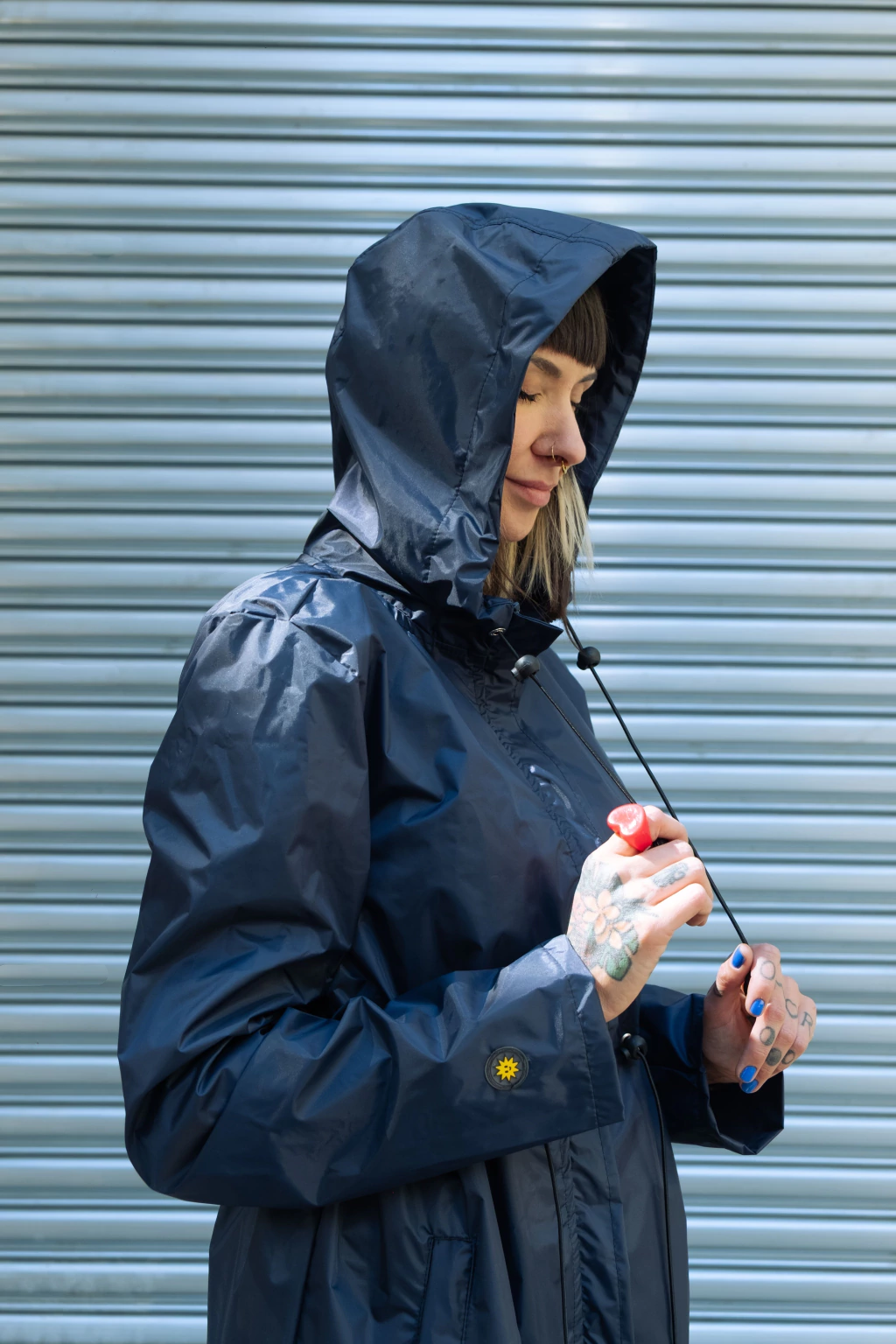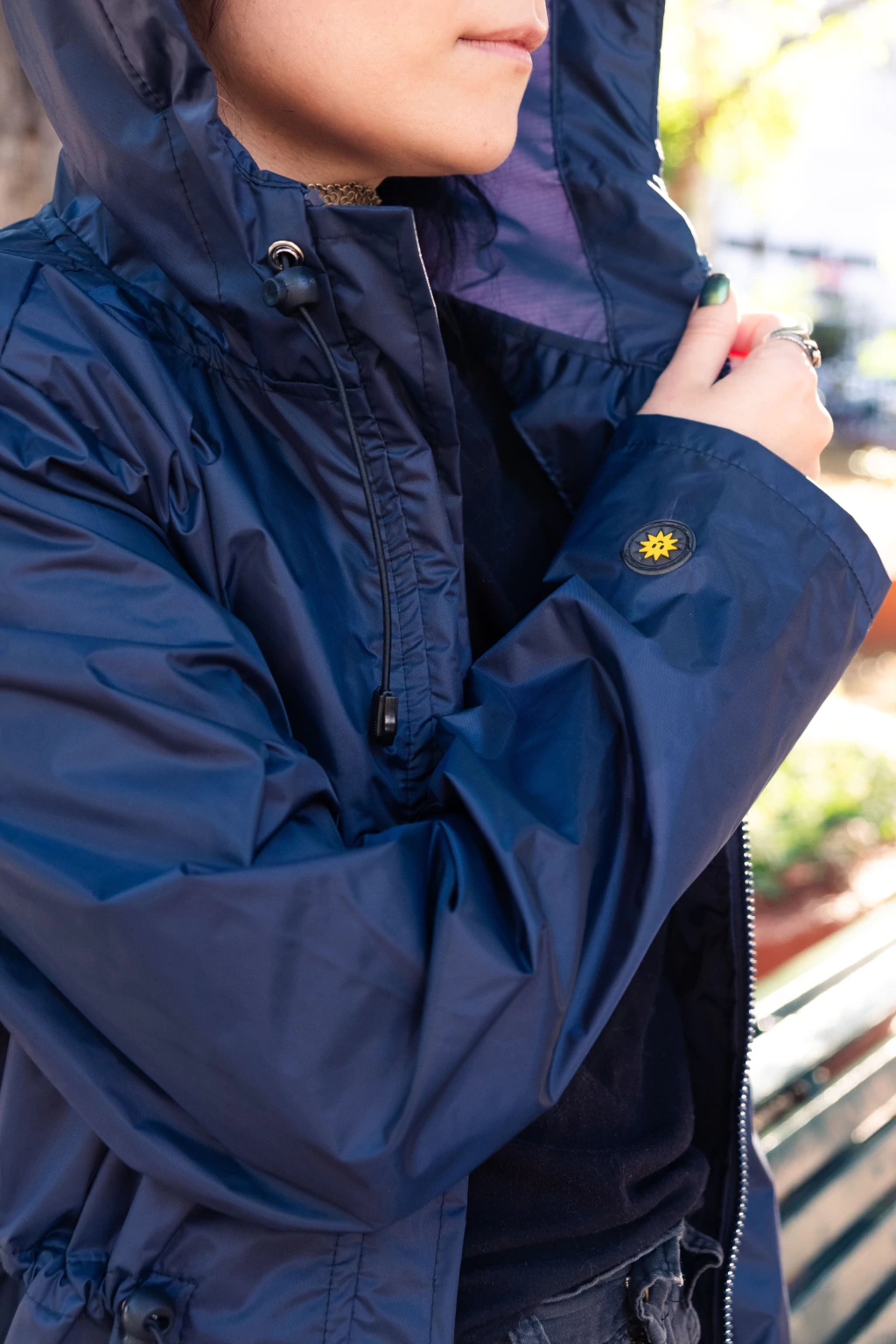 Capa de Chuva de nylon emborrachado, que pode ser usada como capa de chuva ou corta-vento.
