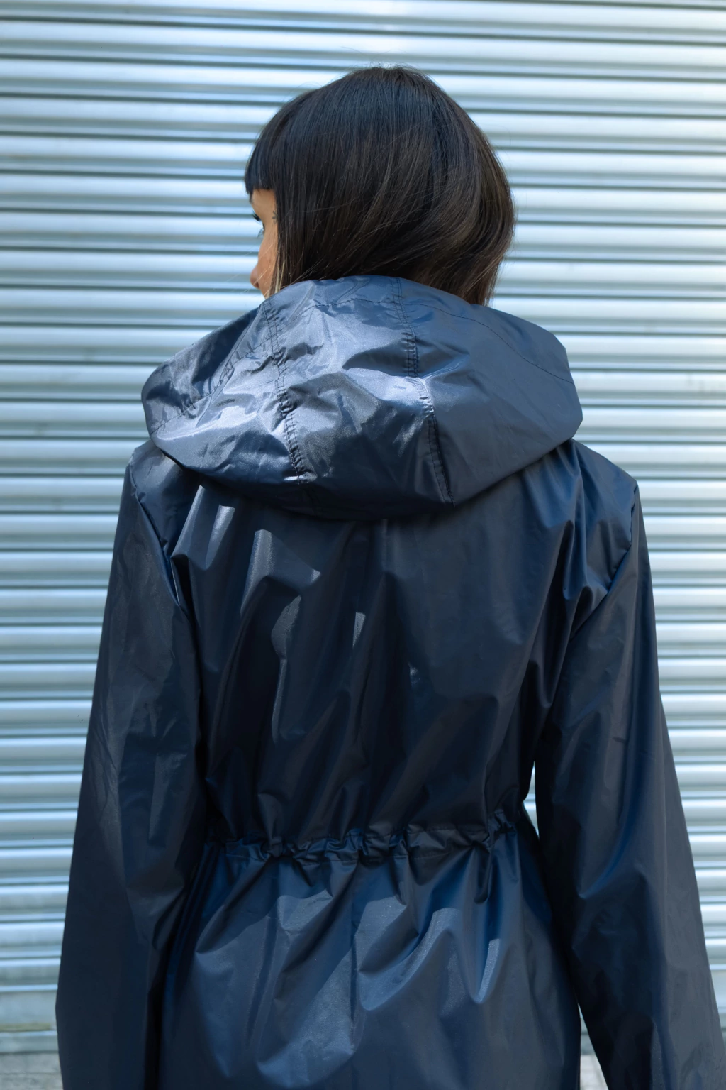 Tem bolsos laterais, elásticos reguladores na cintura, capuz e fechamento com zíper.